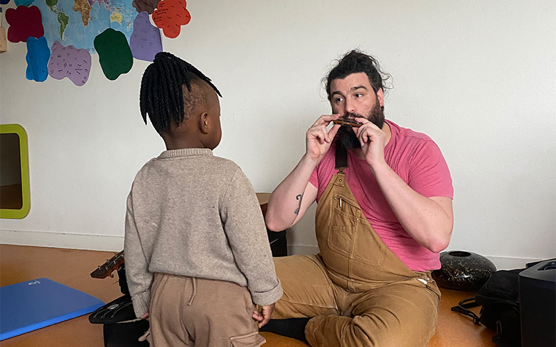 Guidés par Samuel Genin, artiste multi-instrumentiste, les jeunes enfants prennent le temps d’expérimenter la musique à travers des objets bricolés, fascinants et facilement manipulables, des sons inédits et des improvisations interactives qui éveillent leur curiosité naturelle.
