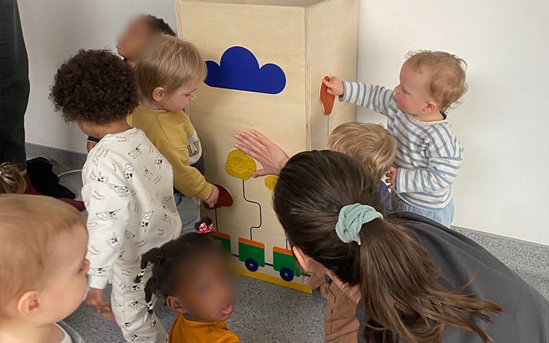 La thématique du train, choisie comme fil conducteur, s’inspire de l’imaginaire du voyage, où chaque étape est un monde à explorer, plein de surprises et de découvertes. À chaque séance, les bébés deviennent artistes en herbe, acteur·rices de leur propre voyage artistique.
